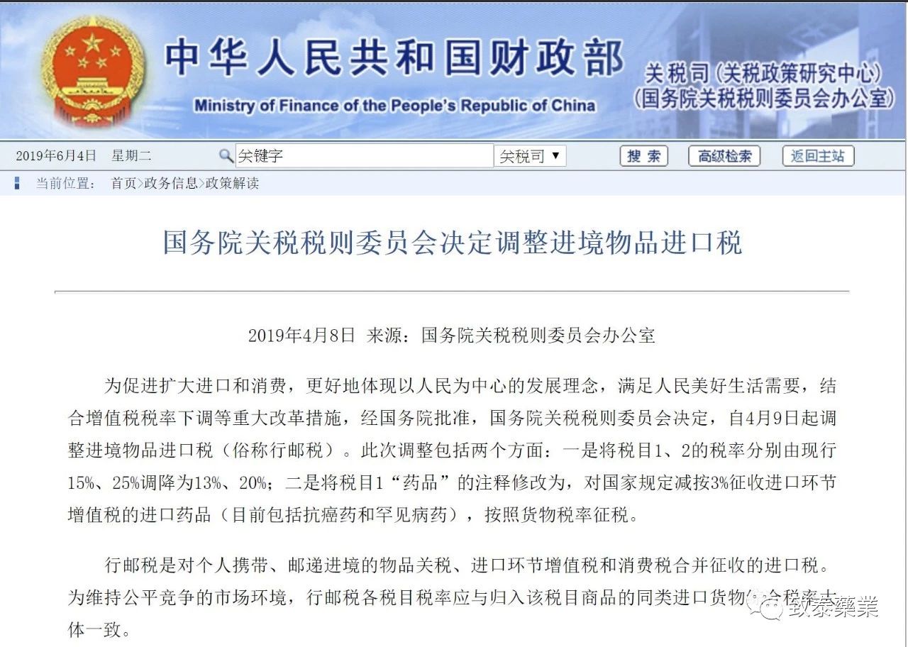 好消息! 最新国务院公布:进口癌症药品/罕见药品,享受3%的优惠税率
