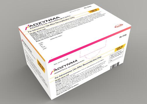 Adzynma(ADAMTS13,recombinant-krhn)以静脉注射用冻干粉末形式提供,有500国际单位或1500国际单位的单剂量小瓶包装。